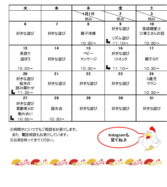 2026年1月の開所日と行事