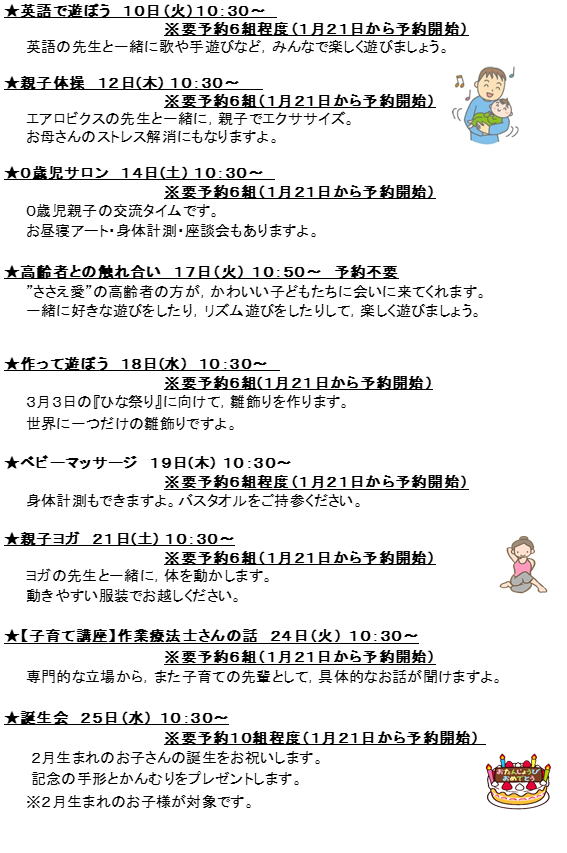 2026年2月の開所日と行事