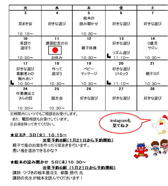 2026年2月の開所日と行事